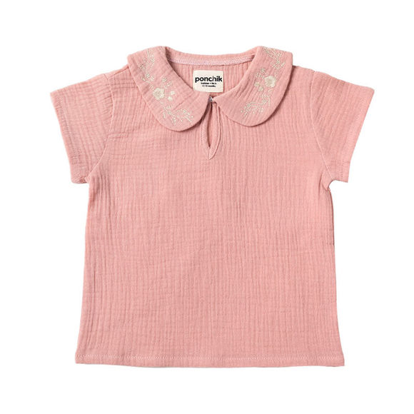 Add to wishlist Online Only Ponchik Babies + Kids Peter Pan Floral Embroidery Collar Top with Keyhole - Baby Pink Muslin $49.95Marketplace